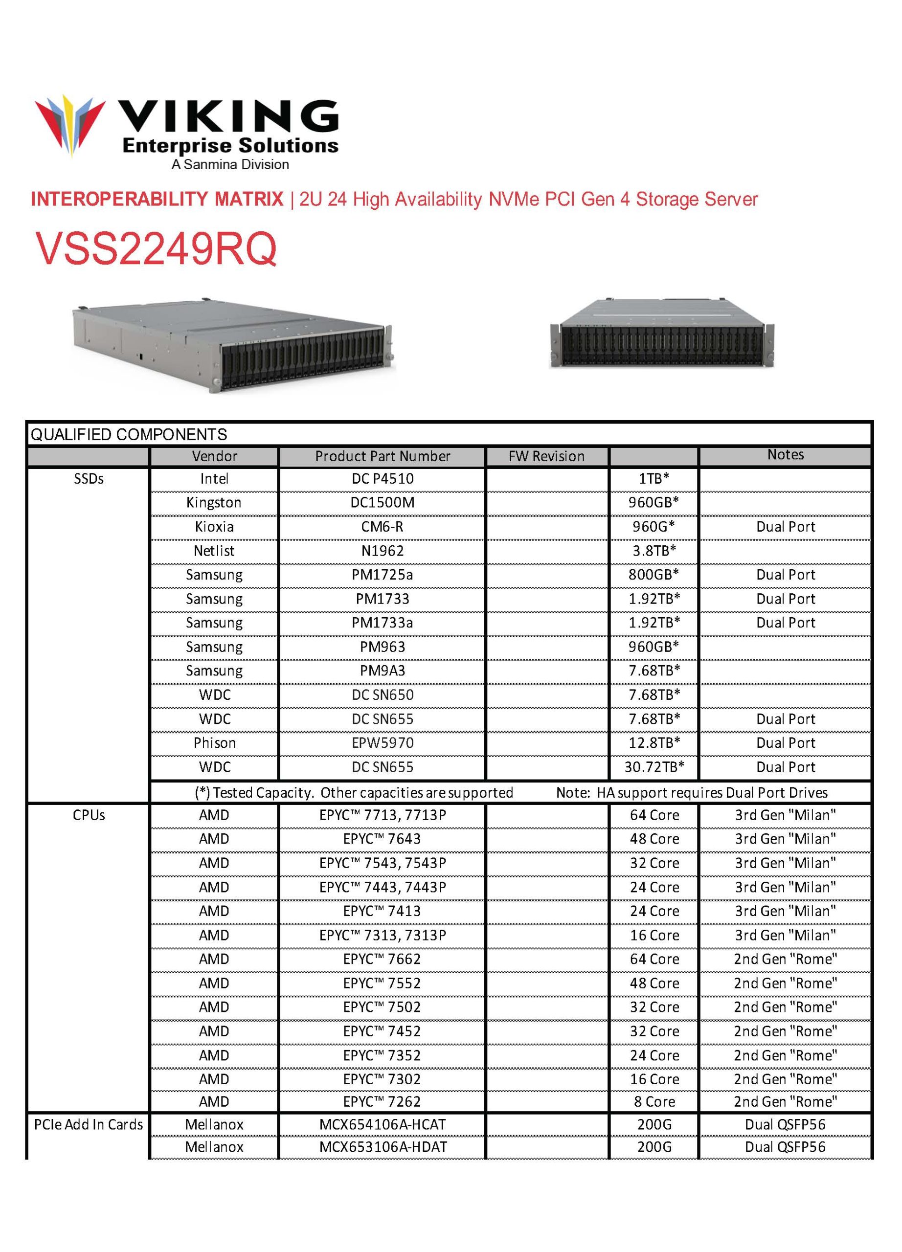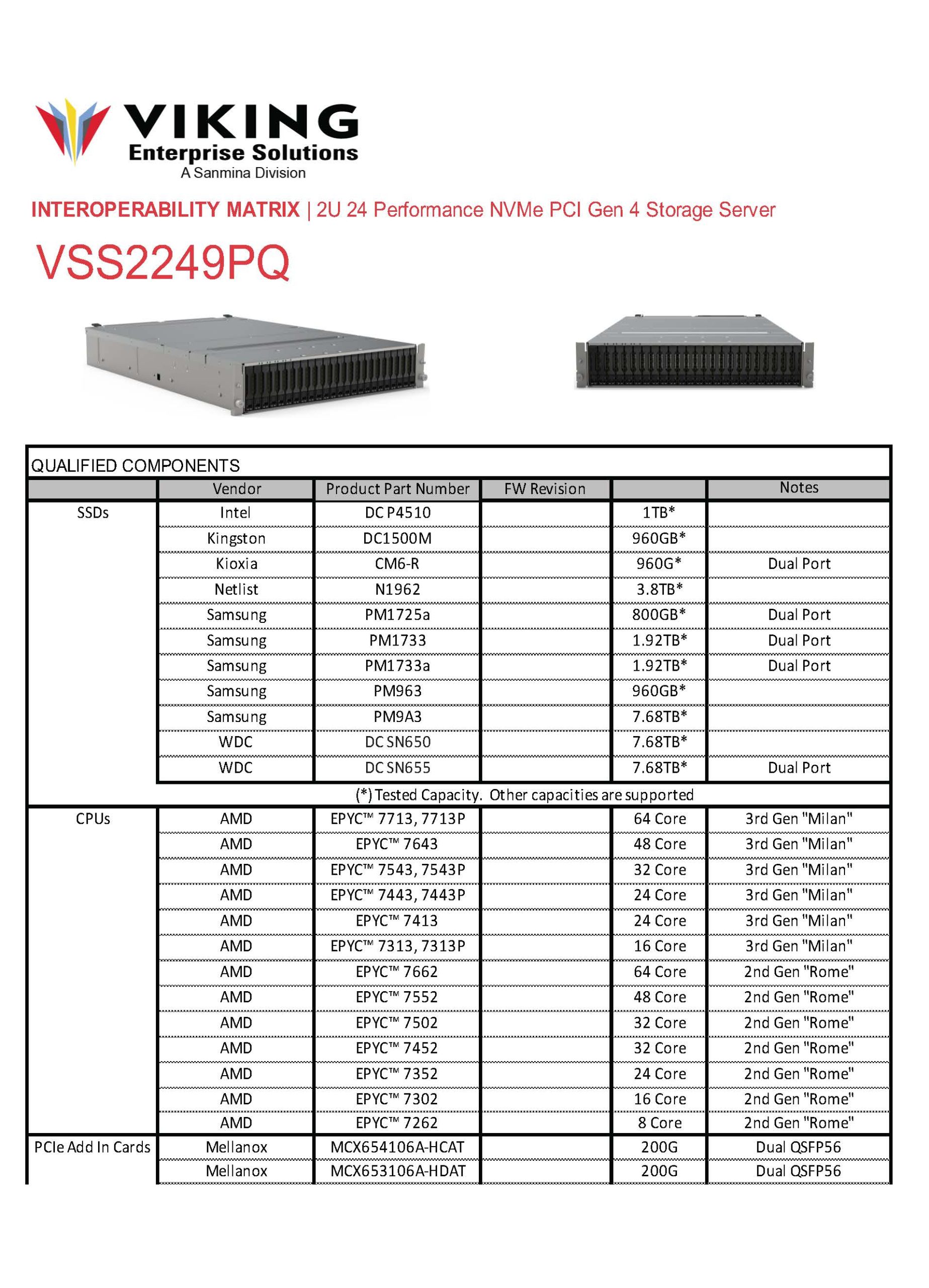 VSS2249RQ: storage server with twenty-four, 2.5” PCIe v4.0 NVMe drives (U.2) combined with two AMD server modules.